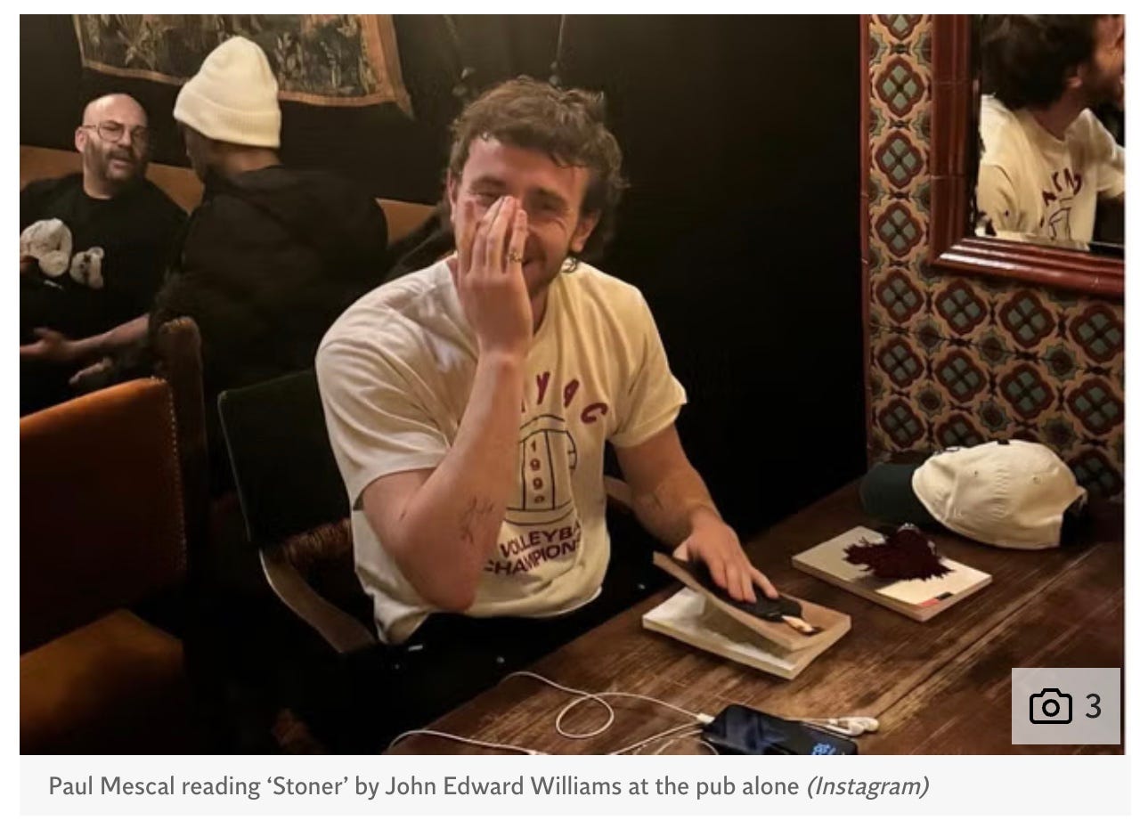 Perhaps Stoner resonates with literary men today because of their own perceived obsolescence in a world where men “do not read fiction”. How true this is doesn’t matter to me, but I’ll wager that the average reader of Stoner sees enough of this schlock about the “the crisis of literary men” floating around in purported publications of note that they consider themselves an aberration in modern culture. Like Stoner, who opted for the rhythms of Medieval poetry over trench warfare, today’s male readers might feel their pursuit of an aesthetic life has sidelined them from the more momentous endeavors of the day (like, genuinely, AI expansion). Of course there are AI tech lords who are also readers out there, but the guys I have in mind might work middling jobs in or adjacent to media or publishing that they’re overeducated and undercompensated for. They eat shit from their boss and say nothing, retreating into a world of letters where the text cannot abuse you, even if it can hurt you. William Stoner lived a life of regrets and agonies, and though we fear we will do the same if we chart his spiritual course, we find that he discovered true love in his work and his affair with Katherine Driscoll. Though these things were imperfect, and at times painful to work through, he got a taste of the good stuff, and by the end, what else did he need?
