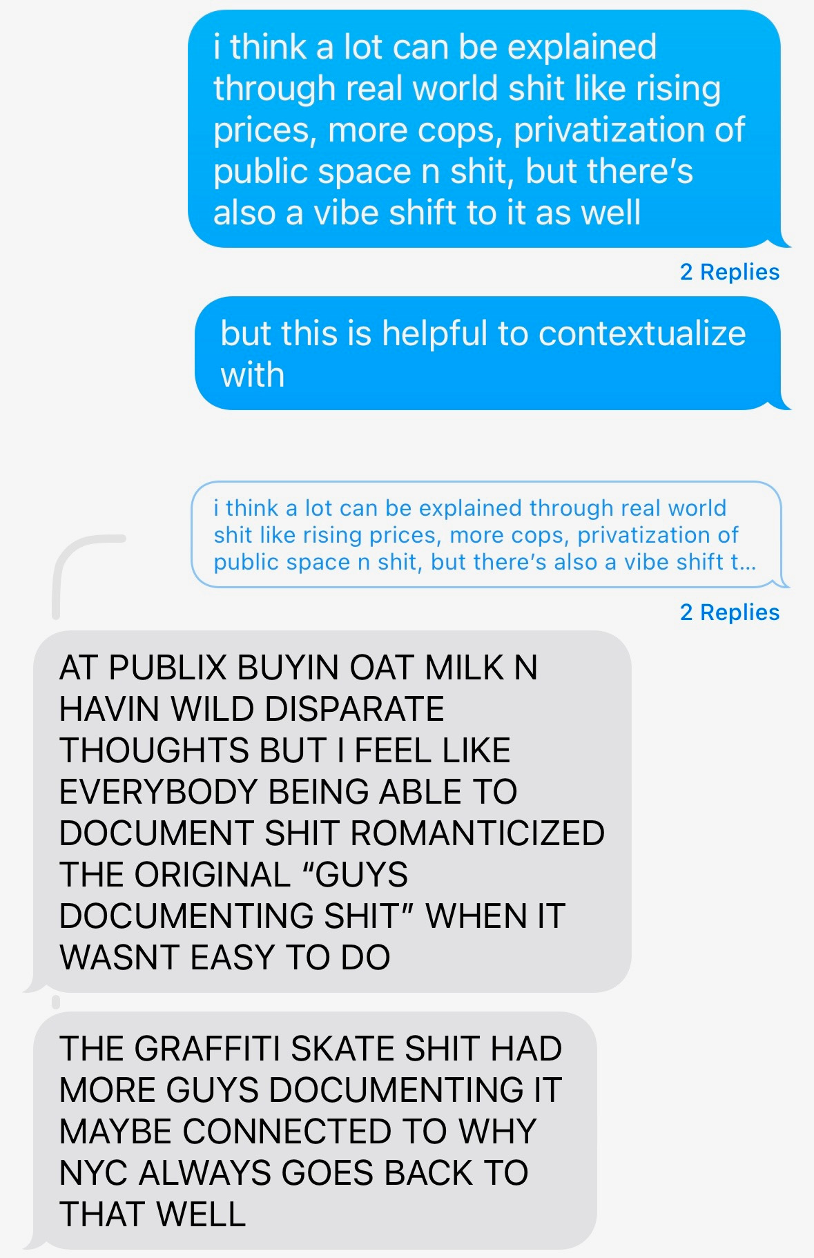 I asked Mero what he thought about this, as a key figure in bringing New York culture online. I grew up watching and listening to his work whenever I felt nostalgic for home, and it’s been an immense pleasure to be working with him every day for the past few years. I’m including some screencaps of our conversation: